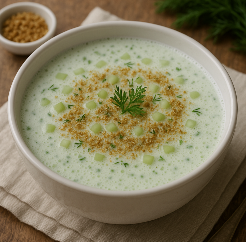 Тараторът не трябва просто да е студен – той трябва да носи хлад като северен вятър с аромат на копър. Ако не ви изтръпне челото след първата лъжица, значи сте си направили рядка млечна салата, а не таратор. Охладете купичките за сервиране – в камерата за 10 минути е достатъчно. Така тараторът ще остане плътен и студен по-дълго. Добавете и 3-4 кубчета лед на порция непосредствено преди сервиране.