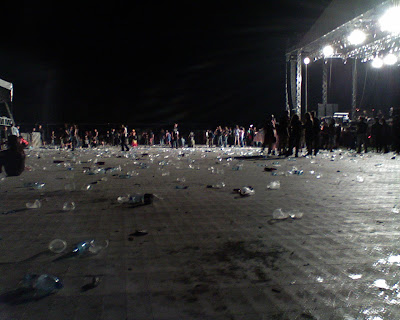 Никога досега не ми се е налагало да стоя прав около 8 часа… Толкова време измина от влизането ни в стадиона до края на концерта. Ето защо когато хората се разотиваха, ние се тупнахме върху тревата и постояхме така около половин час, гледайки фойерверки, а след това и останалите по терена боклуци…